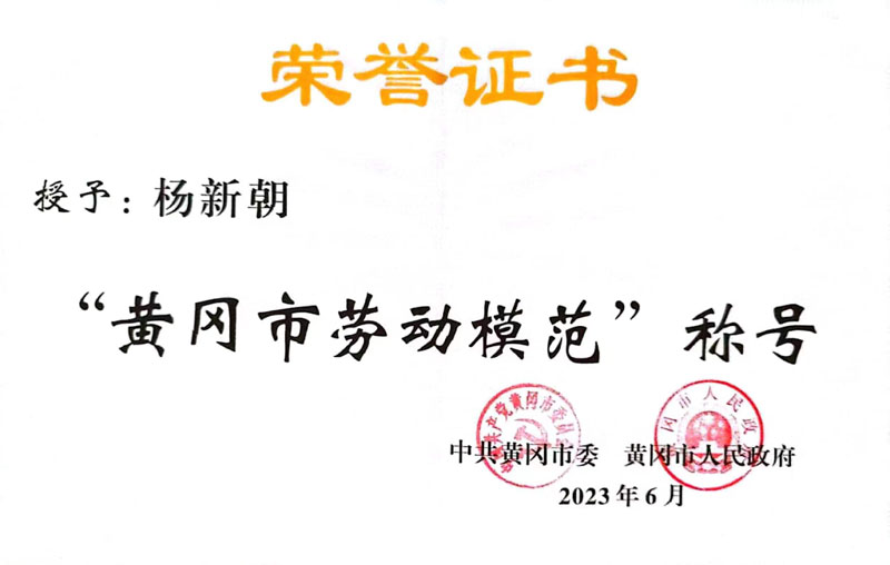 楊新朝經(jīng)理榮獲“黃岡市勞動(dòng)模范”稱號