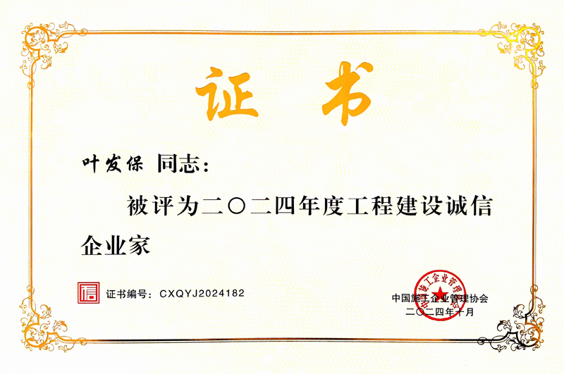 集團(tuán)總經(jīng)理葉發(fā)保獲評二○二四年度工程建設(shè)誠信企業(yè)家榮譽(yù)稱號