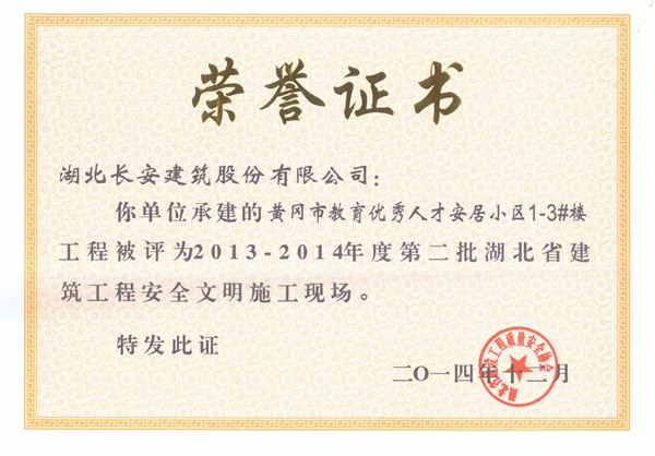 2014年省安全文明榮譽(yù)證書(shū)