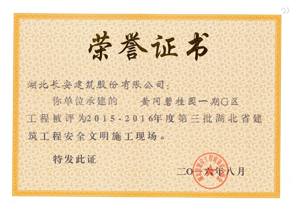 2015年省安全文明榮譽(yù)證書(shū)