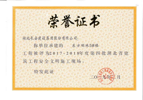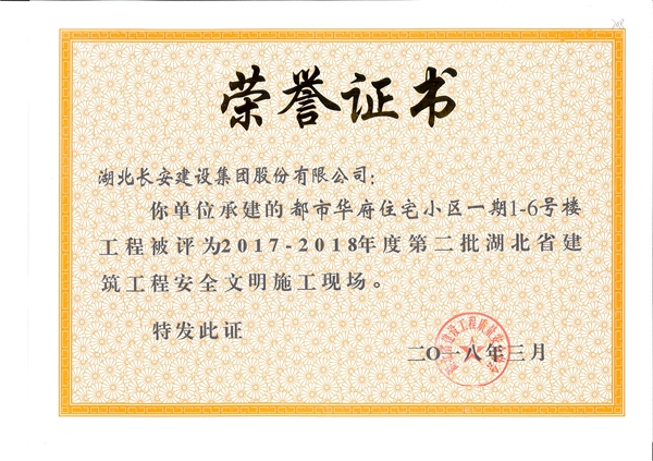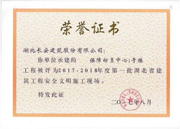 2018年省安全文明榮譽(yù)證書(shū)