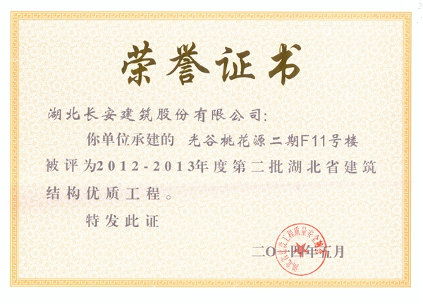 2014年省建筑結(jié)構(gòu)優(yōu)質(zhì)工程榮譽(yù)證書(shū)