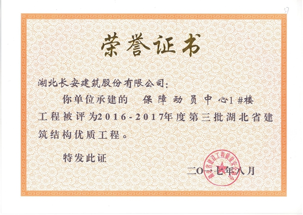 2017年省建筑結(jié)構(gòu)優(yōu)質(zhì)工程榮譽(yù)證書(shū)