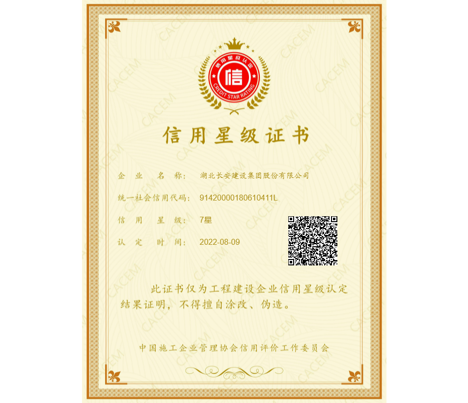 集團(tuán)通過(guò)“工程建設(shè)企業(yè)信用7星級(jí)”認(rèn)定