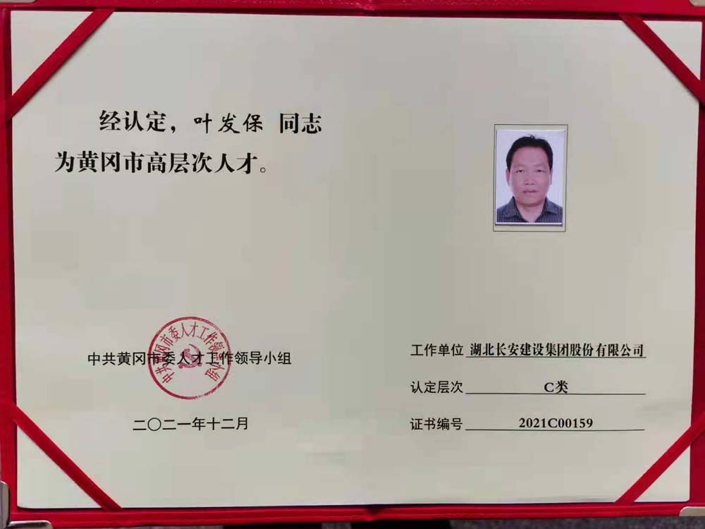 集團(tuán)總經(jīng)理葉發(fā)保榮獲“黃岡市高層次人才”稱號(hào)