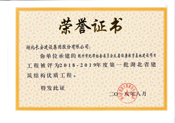 荊州市紀律檢查委員會反腐倡廉教育基地建設項目工程被評為2018-2019年度第一批湖北省建筑結構優(yōu)質工程