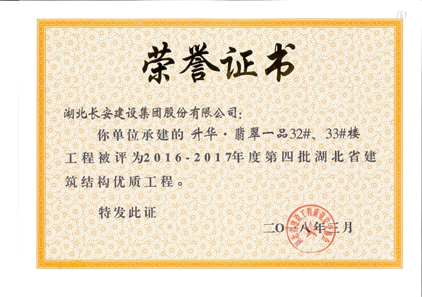 升華翡翠一品32#、33#樓2016-2017年度第四批湖北省建筑結構優(yōu)質工程