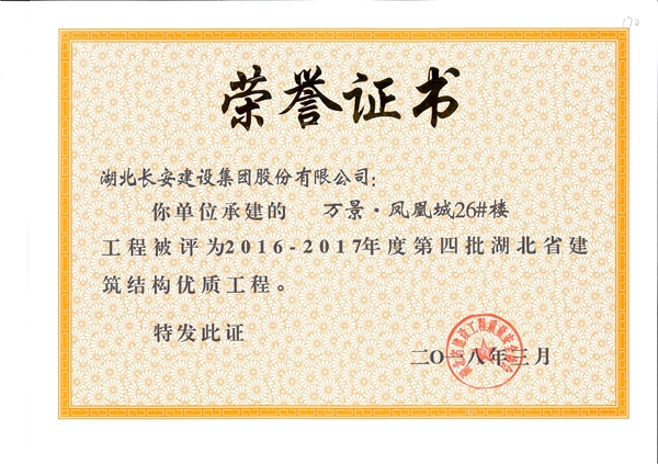 萬景鳳凰城26#樓2016-2017年度第四批湖北省建筑結構優(yōu)質工程