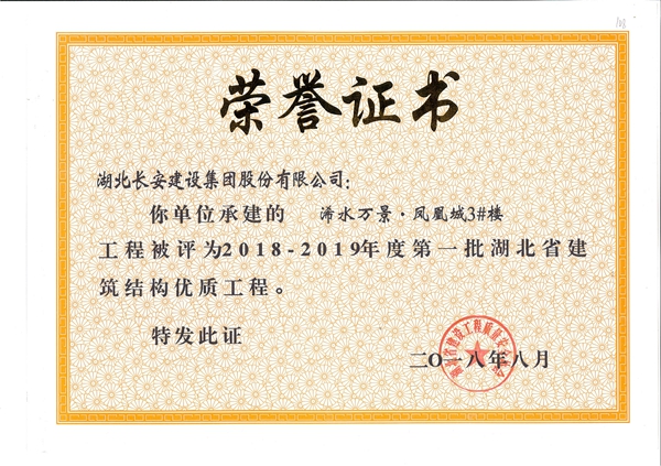 浠水萬景鳳凰城3#樓工程被評為2018-2019年度第一批湖北省建筑結構優(yōu)質工程