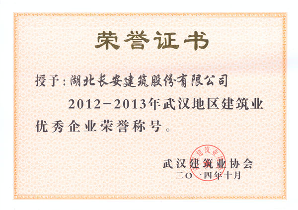 2012-2013年武漢地區(qū)建筑業(yè)優(yōu)秀企業(yè)榮譽(yù)稱號(hào)
