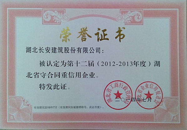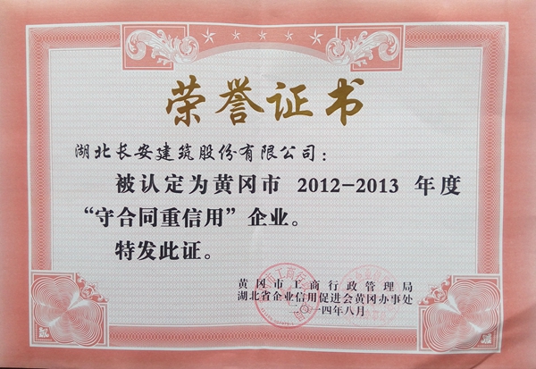 2012-2013年度守合同重信用企業(yè)(黃岡)