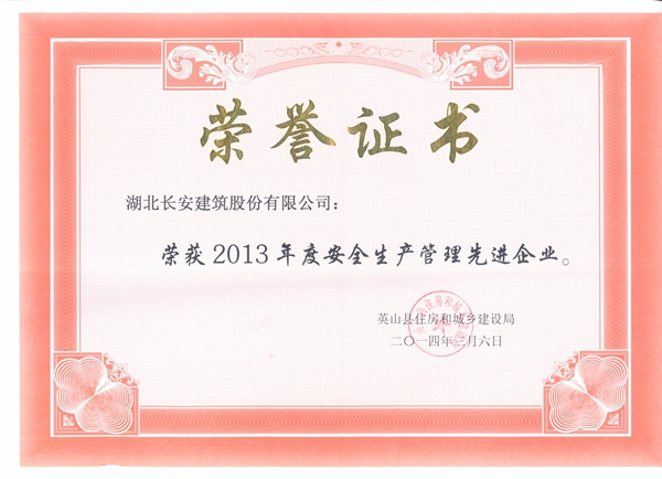2013年度安全生產(chǎn)管理先進(jìn)企業(yè)(英山)