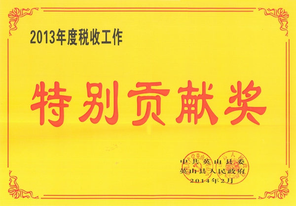 2013稅收特別貢獻(xiàn)獎(jiǎng)