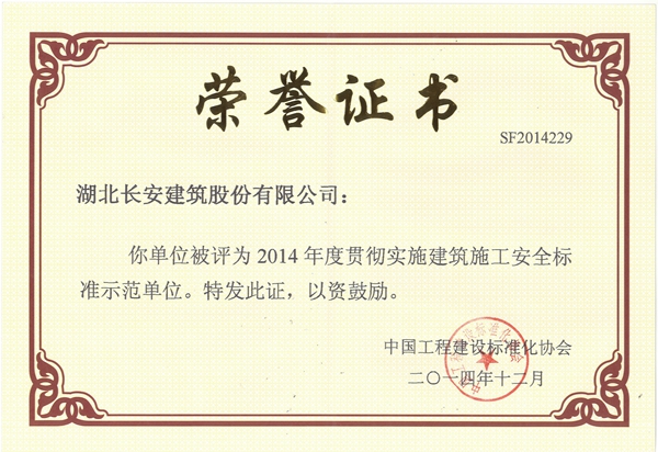貫徹實(shí)施建筑施工安全標(biāo)準(zhǔn)示范單位(中國(guó)工程建設(shè)標(biāo)準(zhǔn)化協(xié)會(huì)2014)