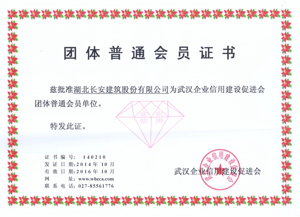 武漢企業(yè)信用建設(shè)促進(jìn)會(huì)團(tuán)體普通會(huì)員證書201410-2016-10