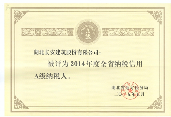 2014年度全省納稅信用A級納稅人