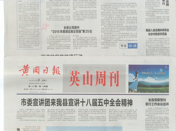 報紙(長安公司晉升“2015年度湖北民企百強”第25位