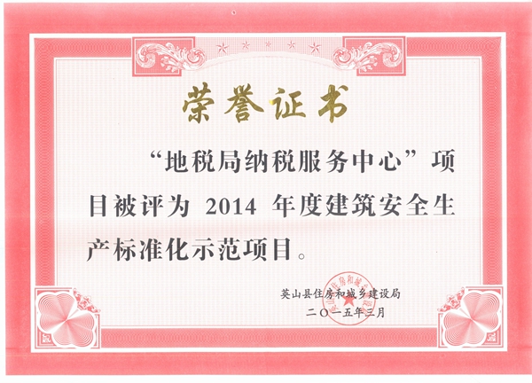 地稅局納稅服務(wù)中心被評為2014年度建筑安全生產(chǎn)標(biāo)準(zhǔn)化示范項目