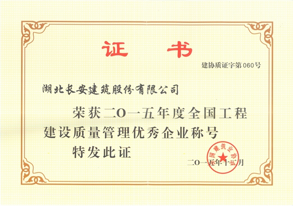 公司榮獲2015年度全國工程建設(shè)質(zhì)量管理優(yōu)秀企業(yè)稱號2015