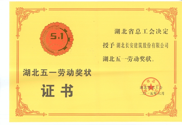 湖北五一勞動獎狀2015年6月