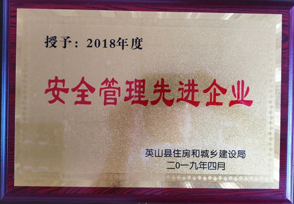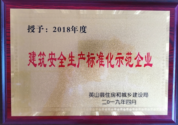 2018年度建筑安全生產(chǎn)標準化示范企業(yè)(英山)