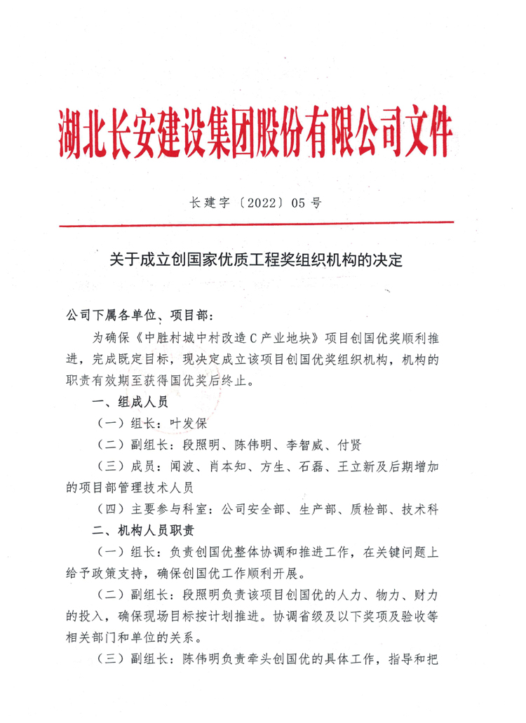 關(guān)于成立創(chuàng)國家優(yōu)質(zhì)工程獎組織結(jié)構(gòu)的決定