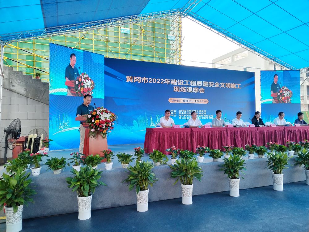 酷暑盛夏,火紅歲月。7月6日,黃岡市2022年建設(shè)工程質(zhì)量安全文明施工現(xiàn)場觀摩活動在湖北長安建設(shè)集團(tuán)承建的英山縣政務(wù)服務(wù)中心建設(shè)項目現(xiàn)場召開。黃岡市住建局黨組成員、副局長徐向華,英山縣縣委副書記、政法委書記張春梅,英山縣住建局黨組書記、局長段衛(wèi)國,英山縣政務(wù)服務(wù)和大數(shù)據(jù)管理局黨組書記、局長段斌,英山縣應(yīng)急管理局黨委書記、局長楊晨曦,湖北省人大代表、黃岡市建筑業(yè)協(xié)會會長、英山縣工商聯(lián)主席、湖北長安建設(shè)集團(tuán)董事長段衛(wèi)昌出席此次活動。英山縣人民政府黨組成員、副縣長陳瓊主持。