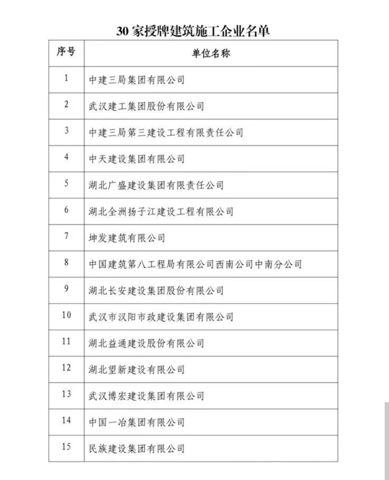 全省建筑工程質量管理30強企業(yè)出爐 湖北長安建設集團股份有限公司位列前十
