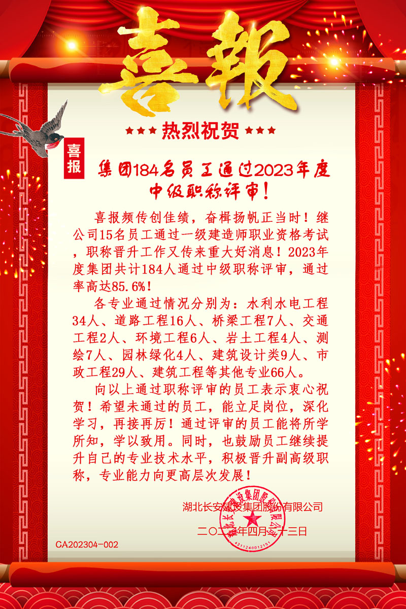 集團(tuán)184名員工通過(guò)2023年度中級(jí)職稱(chēng)評(píng)審