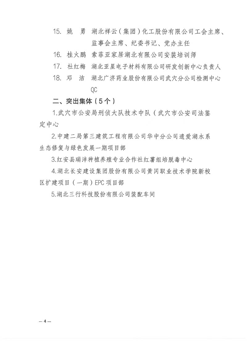 3月5日,黃岡市總工會發(fā)布《關(guān)于2024年全市勞動和技能競賽突出個人和突出集體的通報(bào)》,對在2024年勞動和技能競賽中表現(xiàn)突出的18位個人和5個集體進(jìn)行通報(bào)表揚(yáng)。集團(tuán)公司“黃岡職業(yè)技術(shù)學(xué)院新校區(qū)擴(kuò)建項(xiàng)目(一期)EPC項(xiàng)目部”被評為“突出集體”,同時認(rèn)定為“黃岡市工人先鋒號”。