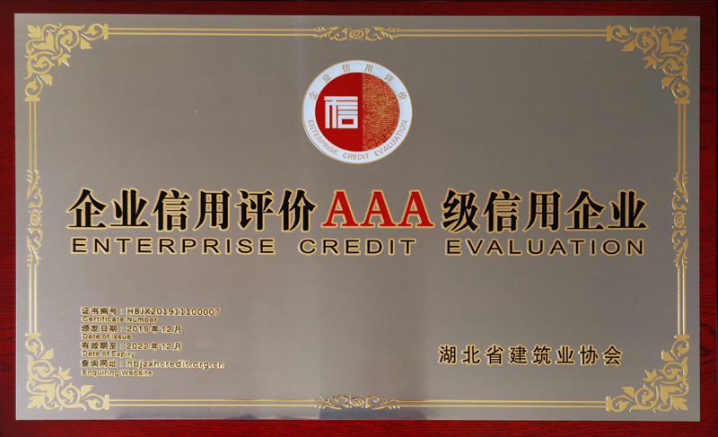 12月25日,集團(tuán)被湖北建筑業(yè)協(xié)會(huì)評(píng)定為“AAA信用企業(yè)”。這是集團(tuán)第一次參與省建協(xié)“AAA”評(píng)審所取得的良好成績(jī),充分體現(xiàn)了集團(tuán)的品牌誠(chéng)信度、品質(zhì)美譽(yù)度及社會(huì)影響力。