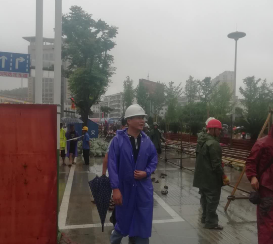 “我們絕對保證不讓任何一個考生因暴雨影響和洪災阻隔而進不了考場。長安建設集團有信心有能力鋪平坎坷路,搭建‘防洪橋’,天涯變咫尺?!?月6日12時許,在英山縣委、縣政府的領導下,在時間緊、任務重、天氣惡劣的環(huán)境中,湖北長安建設集團董事長段衛(wèi)昌顧不上吃飯,迅速成立“抗擊洪災,保障高考”先鋒突擊隊,現(xiàn)場部署敦促搶建“防洪橋”。集團總經(jīng)理葉發(fā)保親自調(diào)度指揮,協(xié)調(diào)鋼管、模板、腳手架等搭橋必需物資。后勤各部門一切行動聽指揮,全力為“防洪橋”提供保障。短短一個小時,集團各項目基地100余人迅速在畢昇大橋集結,冒著傾盆大雨積極投入到突擊隊伍中。