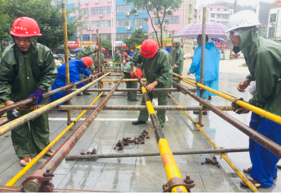 浴雨搶建“防洪橋”