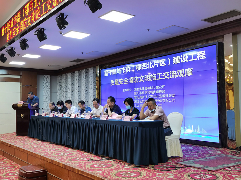 8月26日,由省住建廳、襄陽市住建局、襄陽高新區(qū)建設(shè)局主辦,湖北長安建設(shè)集團(tuán)股份有限公司(簡稱長安建設(shè)集團(tuán))、北龍建設(shè)集團(tuán)有限公司承辦的襄陽十堰隨州城市群(鄂西北片區(qū))建筑工程質(zhì)量安全消防文明施工經(jīng)驗(yàn)交流觀摩會在襄陽隆重召開。省住建廳質(zhì)安處處長王志勇出席會議并講話,襄陽市住建局副局長柳建庭主持。省住建廳和襄陽、孝感、十堰、隨州、神農(nóng)架林區(qū)及襄陽各縣(市,區(qū))住建部門及鄂西北片區(qū)建筑企業(yè)代表共計(jì)320余人參會。此次設(shè)主會場1個、分會場3個。通過云平臺進(jìn)行線上、線下密切互動,同步直播。