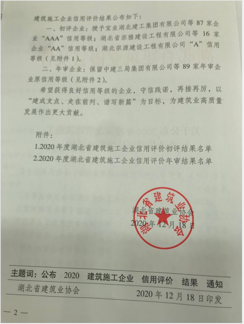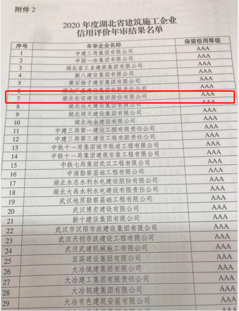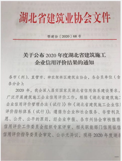 熱烈祝賀集團通過2020年度湖北省建筑施工企業(yè)AAA信用復審
