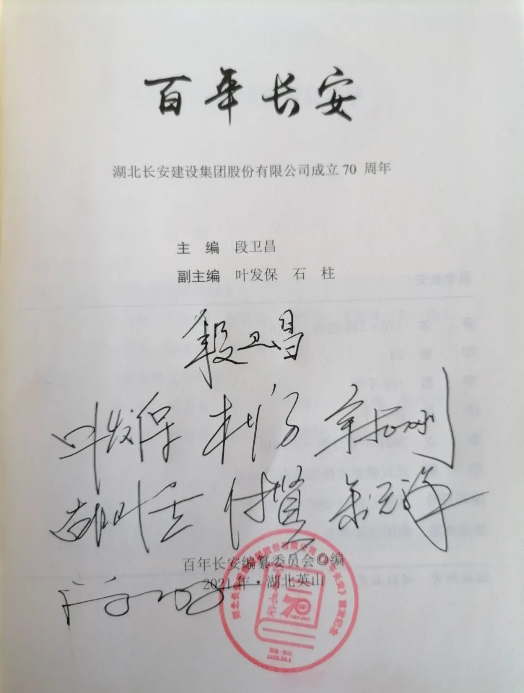 10月1日,湖北長安建設集團在英山長安世紀酒店舉行了《百年長安》簽發(fā)儀式。集團董事長、《百年長安》主編段衛(wèi)昌,總經理葉發(fā)保及董事會全體成員參加了簽發(fā)儀式。