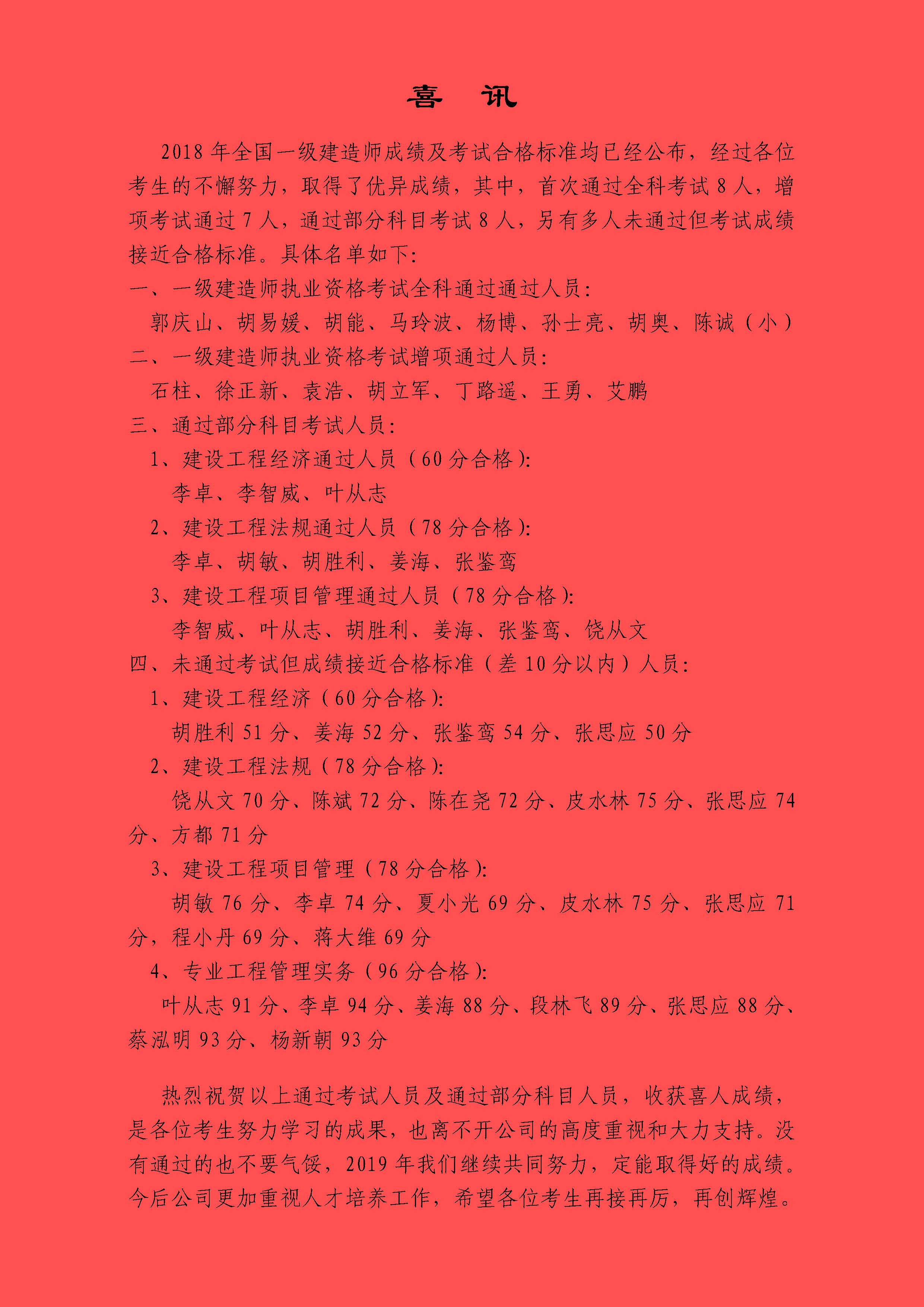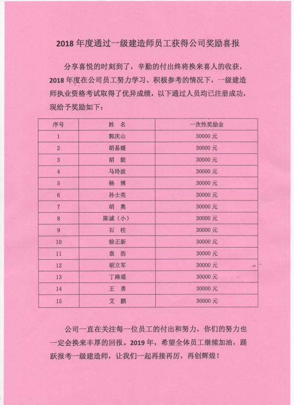 2018年度通過(guò)一級(jí)建造師員工獲得公司獎(jiǎng)勵(lì)